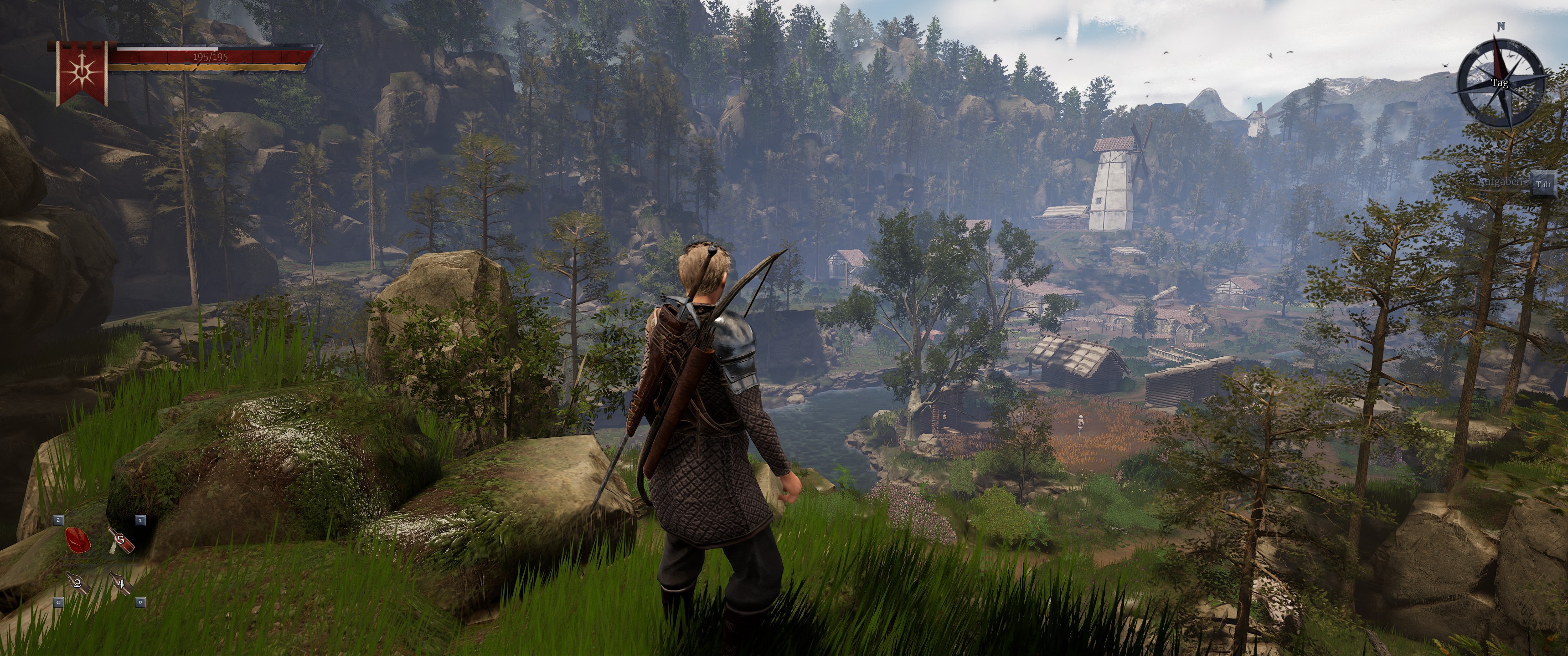 Nach mehreren Spielstunden habe ich mich einer Fraktion angeschlossen (man hat die Wahl zwischen den Soldaten in der Stadt und den Freien Jägern im Wald). Dabei hat es lange gedauert, um hochzuleveln. Attributspunkte verteilt man frei (z.B. auf Geschicklichkeit, Verständnis und Stärke), Fähigkeitspunkte kann man bei Lehrern investieren, um weitere Talente freizuschalten. So weit, so Gothic und genau an der Stelle entscheidet sich, ob man das Spiel durchzieht, oder es vorzeitig abbricht. Ich hatte ursprünglich Tristans Charakter als Kartograf geschätzt und entsprechend auf Verständnis und Handwerk geskillt. Macht Sinn, fördert auch die Atmosphäre, aber irgendwann kommt man an den Punkt, wo Kämpfen unausweichlich ist, um weiterzukommen. Neben dem Sammeln von Kräutern, kleinen Nebenquests und Dinge verkaufen, begann ich in der Arena der Stadt als Kämpfer etwas Geld zu verdienen, und bekam anfangs fürchterlich aufs Maul. Mit Rapier, einigen Schmuckstücken zum Boosten der Geschicklichkeit (Halskette, Ringe) und einigen hölzernen Kampfbewegungen tastete ich mich langsam voran. Und hier kommt der Punkt, der für mich ein echter Gamechanger war: irgendwann hatte ich genug Attributs- und Fähigkeitspunkte, und habe mich auf Einhandwaffen und Rapier spezialisiert. Das Ergebnis: mehr Ausdauer, größere Standhaftigkeit und zusätzlich freigeschaltete Spezialattacken, mit denen ich stellenweise meine Gegner in Grund und Boden stampfte. Gleiches galt auch (stellenweise) für einige wilden Tiere in den Wäldern, vor denen ich sonst immer geflohen war. Ich wurde nicht übermächtig, hatte aber das Gefühl, das Spiel endlich auch in seiner Tragweite und seinen Möglichkeiten langsam zu verstehen. Eine andere Hilfe dabei ist übrigens die Community, die zwar klein, aber mit viel Herzblut agiert. Sei es bei Quests, Fundorten (das größte Thema) oder Meldung von Bugs; hier wird man schnell fündig und findet auch meistens die Orientierung, die einem in dem Spiel fehlt.