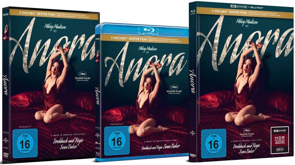 Die Blu-ray kommt mit einer 67-minütigen Dokumentation „Stripped Down“ zur Entstehung des Films einher, welches einem Produktionstagebuch gleich. Neben Casting Clips sind zudem Deleted Scenes (7 Minuten) enthalten, die u.a. zeigen, wie das Business funktioniert, wenn Anora mit unpersönlichem Smalltalk einen älteren Mann becirct.